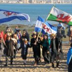 28/07/2011Se celebró hoy 28 de julio el centésimo cuadragésimo sexto aniversario de la ciudad de Puerto Madryn, enmarcados por una diáfana mañana y muy fría. Motivo que no impidió la celebración ni la participación de los vecinos. En la zona de Punta Cuevas se llevó a cabo la tradicional rogativa y la recreación del histórico desembarco y el encuentro de dos culturas y una entrega de obsequios de parte de una descendiente de galeses de Santa Fe a la Asociación Cultural Galesay a la Comunidad Mapuche Tehuelche Pu Fotum Mapu. Asimismo, se concretó la entrega de plaquetas de reconocimiento al mérito a ocho familias galesas que participaron del desembarco, a las Damas Rosadas de nuestra ciudad; se hizo efectiva la entrega de un subsidio de parte del Instituto de Asistencia Social a la comuna de Madryn destinado a afrontar parte de los gastos que demanda el Simposio Mundial de Coros que se inicia el próximo 3 de agosto. A su vez, se descubrió una placa en un sitio de Punta Cuevas considerado como posible enterratorio nativo. Posteriormente, las autoridades se trasladaron hasta el monumento que recuerda a la Gesta Galesa en la ciudad y desde allí recorrieron las obras de la remodelación del Teatro del Muelle. Durante la ceremonia central hicieron uso de la palabra el lonco Ángel Ñanco y Nelcis Jones así como el vicegobernador de la provincia, Mario Vargas.
