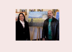 La directora de cultura de Gaiman Sonia Baliente y González Medrano junto al óleo dedicado a Buen Pasto 21/10/2011 Desactivado Por Juan Jose De Focatiis