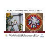 23/11/2011Las Artistas Plásticas Patricia Tapia y Verónica Díaz Guerra inaugurarán la muestra plastica «Espacio para la unicidad» en Hotel Australis Yene Hue, sito en Av. J. A. Roca 33 de Puerto Madryn, el día sábado 26 de noviembre a las 20 hs. Como siempre las artistas realizarán la apertura de la muestra y un brindis con los presentes.