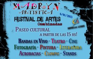 La Secretaría de Cultura, Educación y Deporte de la Municipalidad de Puerto Madryn invita a la Segunda Edición “Madryn Artística”- Festival de Artes Combinadas, que es una propuesta cultural a realizarse el miércoles 9 de enero en la ciudad de Puerto Madryn a partir de las 15 horas. El festival busca desarrollar un espacio multicultural abierto al público y convoca a diversos artistas locales, centros culturales, grupos, instituciones, etc. cediendo un espacio para desarrollar distintas manifestaciones artísticas, donde el público presente podrá interactuar con las instalaciones, shows en vivo y exposiciones.