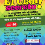 La Subsecretaría de Gestión Cultural de la Municipalidad de Puerto Madryn invita a participar de “El Clan Secreto”, un espectáculo teatral para toda la familia, dirigido por Paula Goity. Las funciones se realizarán los domingos 18 y 25 de septiembre a las 17.30 en el Teatro del Muelle, ubicado en avenida Rawson 60. “El Clan Secreto” cuenta las aventuras de un grupo de amigos que se encuentran a jugar en una vereda de su barrio y, con el afán de hacer algo distinto, deciden entrar en un teatro viejo y cerrado, buscando nuevas aventuras en un sitio lleno de magia. En el espectáculo actúan Florencia Mayer, Camila López, Ariela Menardo, Camila Aruj y Enzo Zampini. Asimismo, la dirección coreográfica es de Aldana Amaya, el valor de la entrada será de 50 pesos.