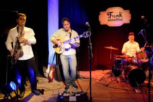 02/05/2017EXCELENTE CONVOCATORIA EN EL RECITAL DE FUNK SINATRA . Se realizó el fin de semana en el Teatro del Mulle, Con la colaboración de la Subsecretaría de Gestión Cultural de la Municipalidad de Puerto Madryn, la banda Funk Sinatra se presentó, CERRANDO EL MES DE ABRIL Y durante casi dos horas, brindó un gran show ante una importante cantidad de público presente. En el recital, la banda de funk jazz fusión integrada por Martín Martínez en guitarra, Mariano Giannino en bajo y Juan Solco en batería, desplegó sobre el escenario un repertorio de funk y jazz fusión de composiciones propias y temas de otros artistas del género como Chuck Loeb, Soul Live, Mike Stern y Count Basic. Estuvieron presentes como músicos invitados Luciano Sorrentino en saxo y Facundo Vázquez en teclado.