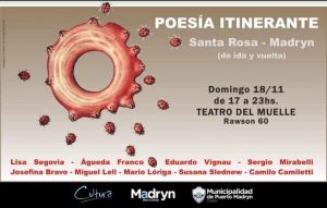 El grupo cuenta con dos discos, el primero “Fuimos Huesos” y el Fuimos Huesos” y el segundo “De tu barrio y el mío”. Por otra parte, se invita a participar de “Poesía Itinerante: De ida y vuelta” encuentro literario organizado por poetas de La Pampa. El evento será el domingo 18 de noviembre a las 20 en la sala de Av. Rawson 60. La entrada será libre y gratuita.