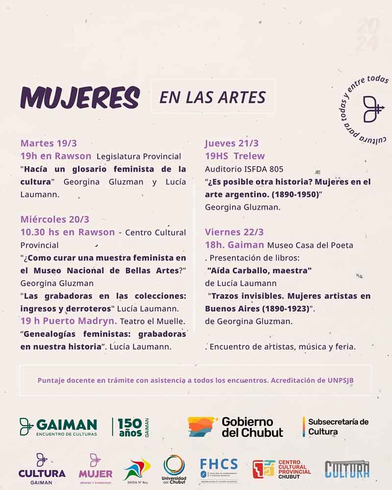 MUJERES EN LAS ARTES – PTO MADRYN – TRELEW – RAWSON Y GAIMAN